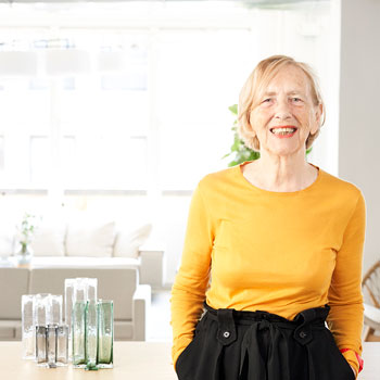 En plus du design de mobilier, Kjær est également reconnue pour son art du verre, notamment le vase croisé "Kryssvasen". Ce vase, avec sa forme géométrique épurée, incarne la philosophie de Kjær autour de la simplicité et de la fonctionnalité. La forme croisée crée un motif délicat de lignes entrecroisées, donnant au vase une qualité intemporelle. Il démontre la capacité de Kjær à insuffler beauté et équilibre dans des objets du quotidien.